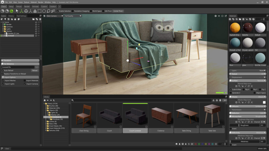 Toolbag の設計において、ユーザー体験は最も重要な要素のひとつです。アセットやシーンの管理が快適なワークフローとして自然に感じられるように設計されています。Toolbag の軽量で柔軟、そして使いやすいエディタを活用すれば、あなたのアーティスティックなビジョンを具現化できます。
